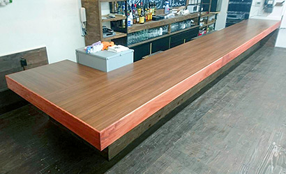 客席のテーブルの天板が剥げてしまったので、綺麗に貼り替えて欲しいが、店休日が一日しかないので、朝引き取って、翌日の営業時間までに納品できるかご相談いただきました。